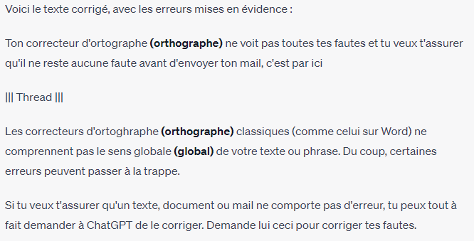 En agissant ainsi, tu ne demandes pas « juste » à l’IA de te corriger, tu essayes de t’améliorer et de comprendre pourquoi tu as fait ces fautes !