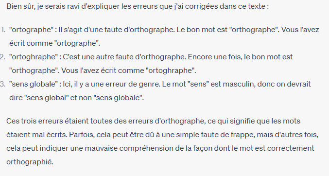 Ce qui est cool c’est que tu as la faute et sa correction côte à côte. Si tu veux qu’il t’explique la correction, tu peux aussi lui demander :