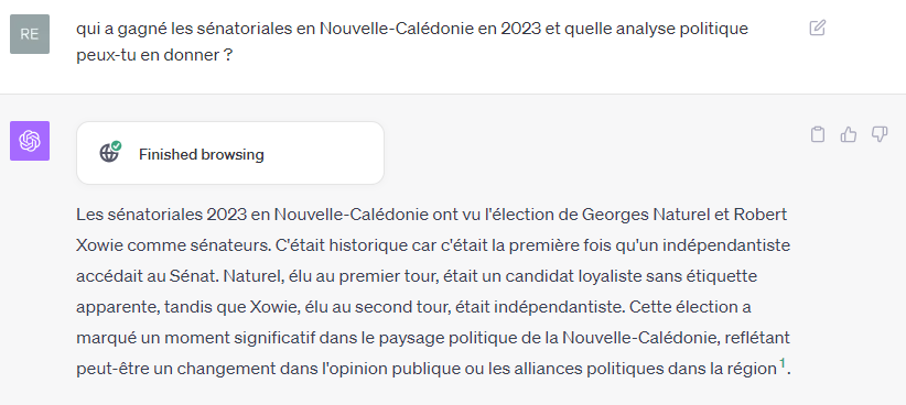 Et voilà, le tour est joué et ChatGPT est connecté à Internet.