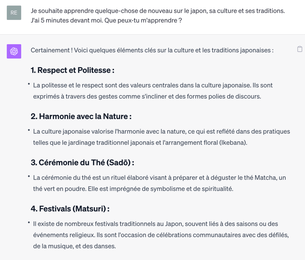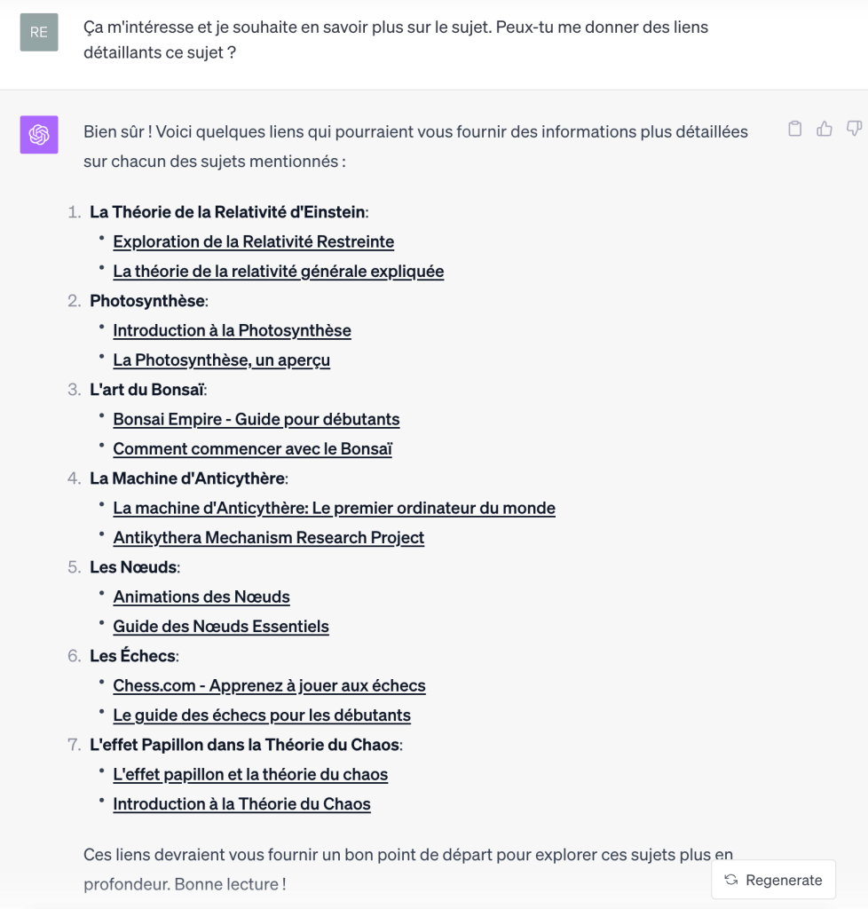 Lorsque je veux apprendre quelque-chose sur un sujet particulier, je spécifie mon prompt pour qu’il corresponde à ce dont j’ai besoin :