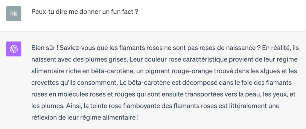 Un petit dernier pour la route, parfois je cherche juste une anecdote ou un « fun fact » alors je lui demande :