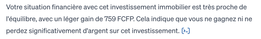 Ceci est un exemple de comment vous pouvez utiliser ChatGPT avec des données financières (ici l’analyse de la rentabilité d’un investissement immobilier)
